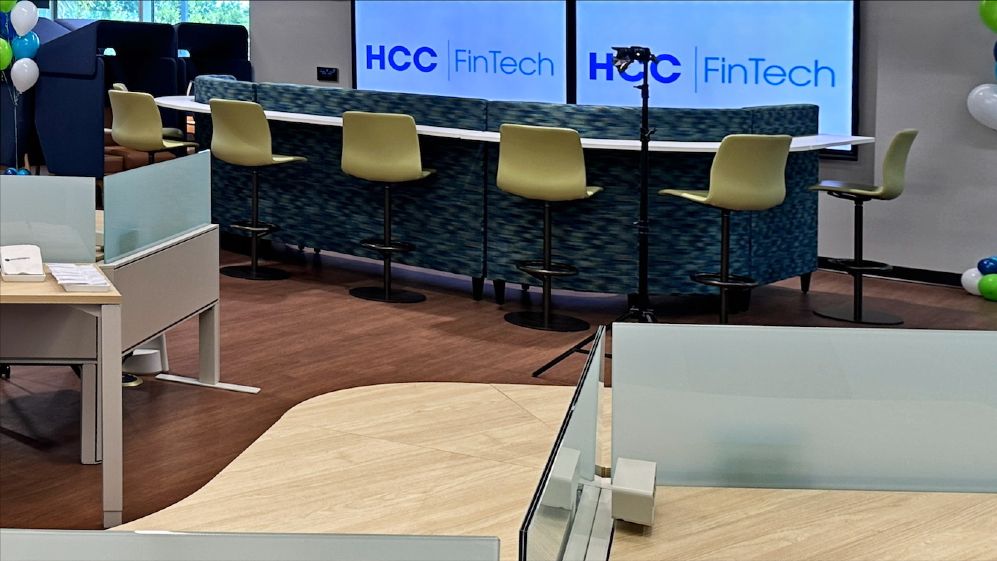The Financial Technology lab at HCC was designed to be like a FinTech workspace, rather than a typical classroom.